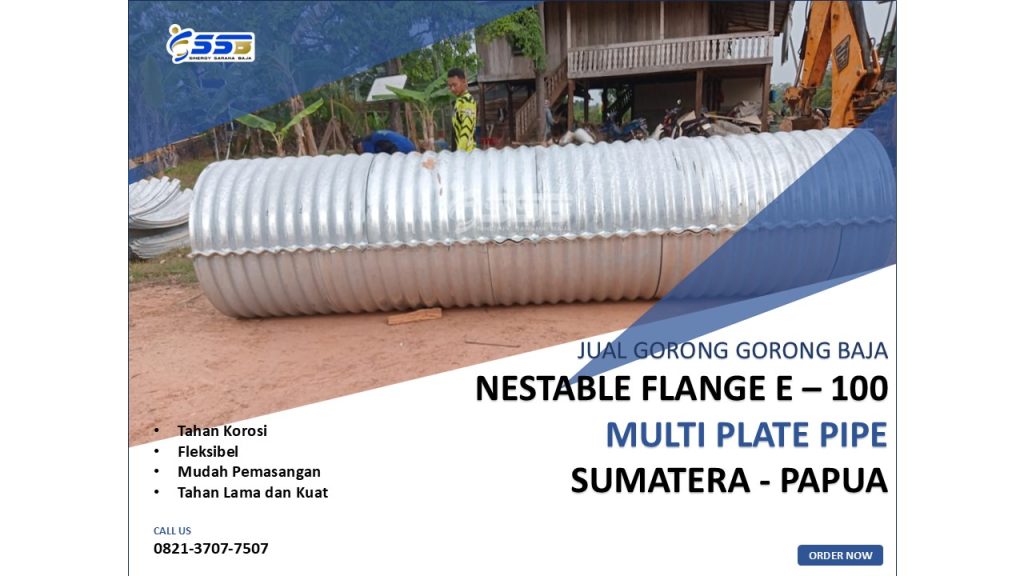 Corrugated steel pipe Pipa Baja Bergelombang atau Corrugated Steel Pipe adalah struktur pipa yang terbuat dari lembaran-lembaran plat baja yang sudah mengalami proses gelombang /corrugation dan proses pelengkungan plat (Curving) dan plat disambungkan dengan menggunakan baut mutu tinggi sehingga dengan plat yang tipis mampu menahan beban yang Besar.